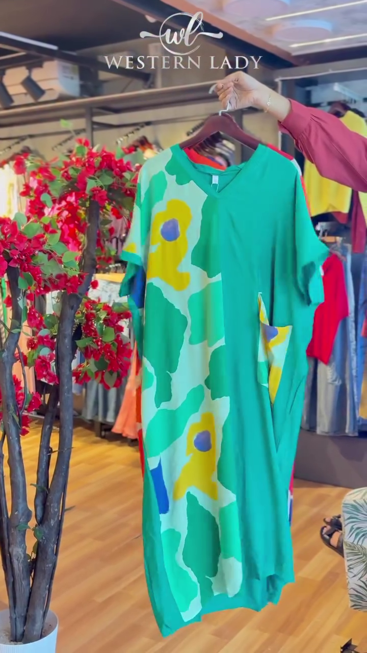 Abstract Floral Dress in Green Mix