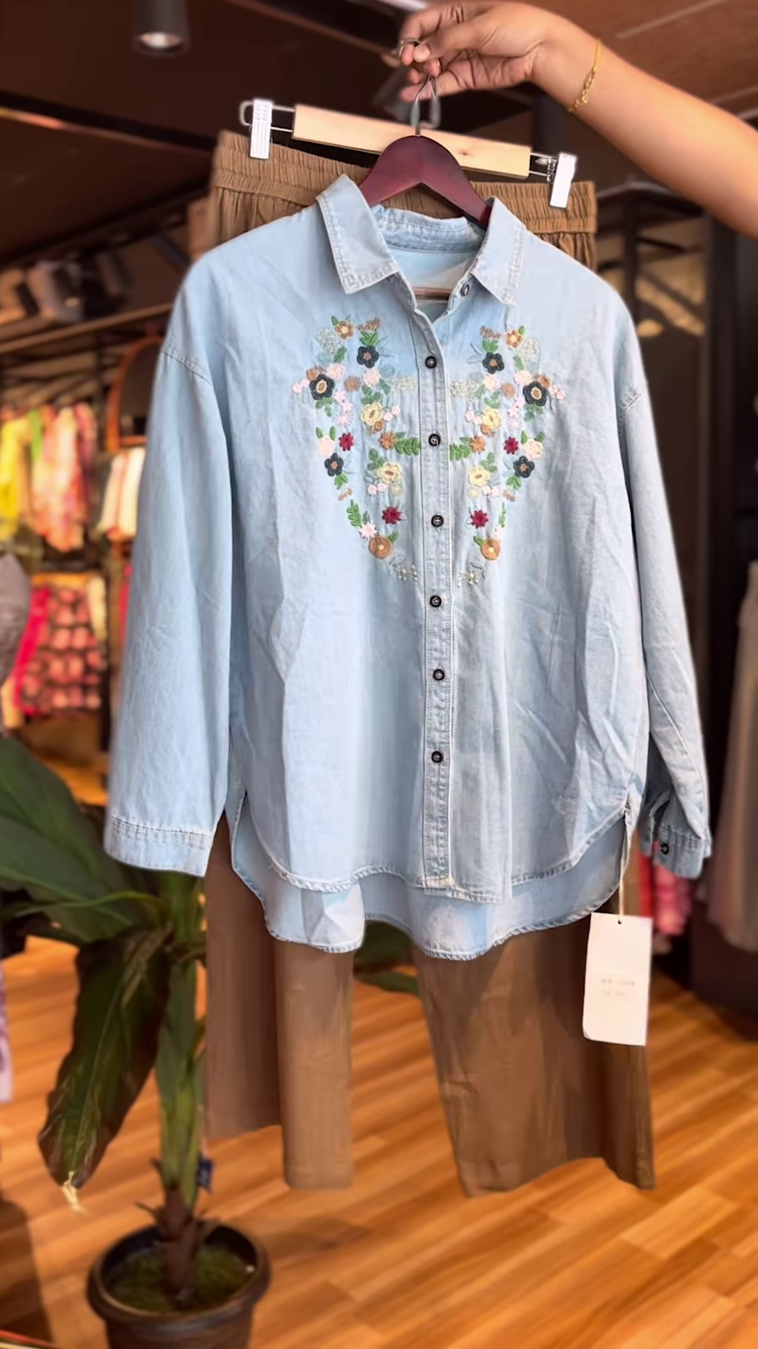 Bring countryside charm to your everyday with the Denim Meadow co-ord — where vintage vibes meet easygoing elegance. The soft chambray shirt features intricate floral embroidery in sunset hues, adding a hand-touched feel of wildflower fields and weekend picnics. Paired with warm tan culottes, it’s a look that feels rooted, rustic, and ready for slow days.