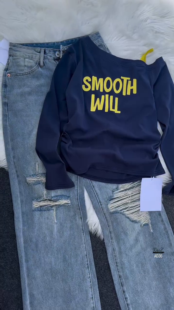 Women’s Long Sleeve Casual Graphic Top – “Smooth Will”